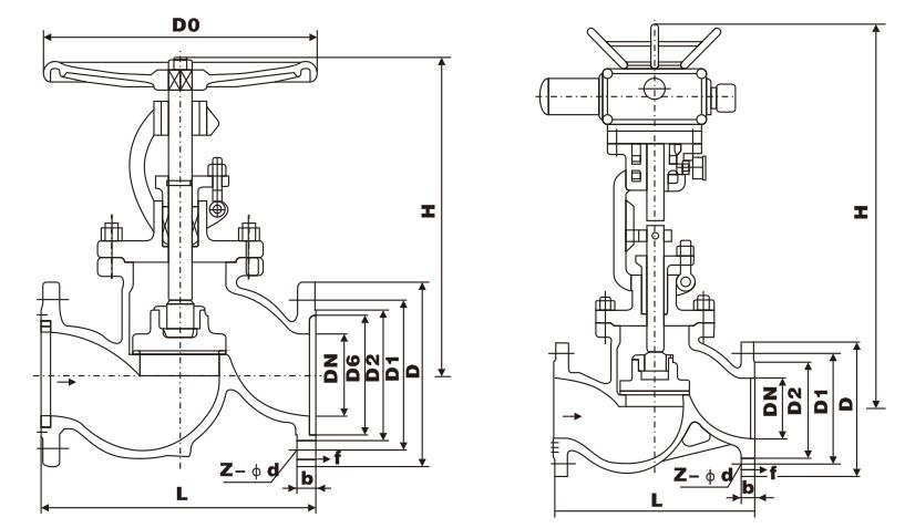 三、J41H/Y國標(biāo)截止閥主要外形和連接尺寸