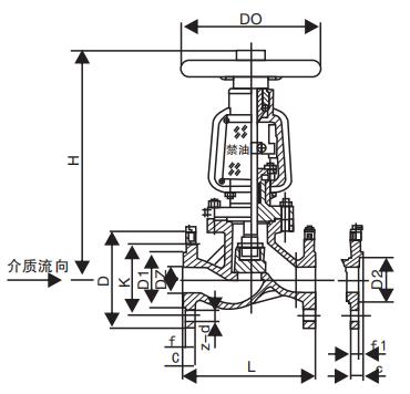 三、YJ41W 氧氣截止閥主要外形尺寸: