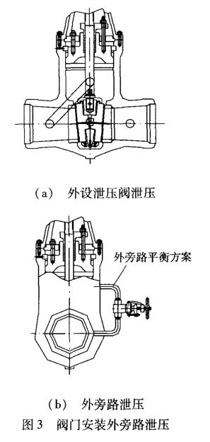 (2)閥門安裝外部旁路泄壓