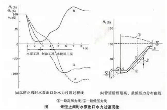 以上為水泵不裝止回閥的后果。同時(shí),泵后的壓力變化將以水錘波的形式沿著出水管道向出水池正射,再由出水池反射回來,在出水管道中形成復(fù)雜的水錘現(xiàn)象,防水錘現(xiàn)象的止回閥產(chǎn)品可以選用防水錘止回閥。