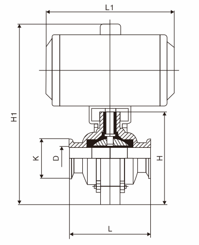 三、D681氣動衛(wèi)生級蝶閥主要外形尺寸-pn6~16(6~16bar)