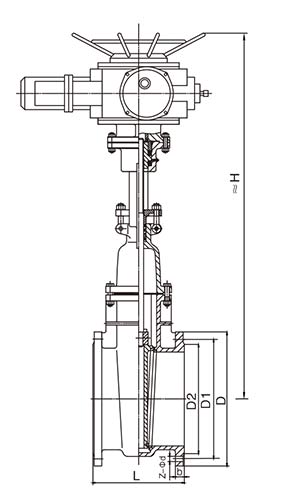 五、Z941H 大口徑電動閘閥主要外形尺寸